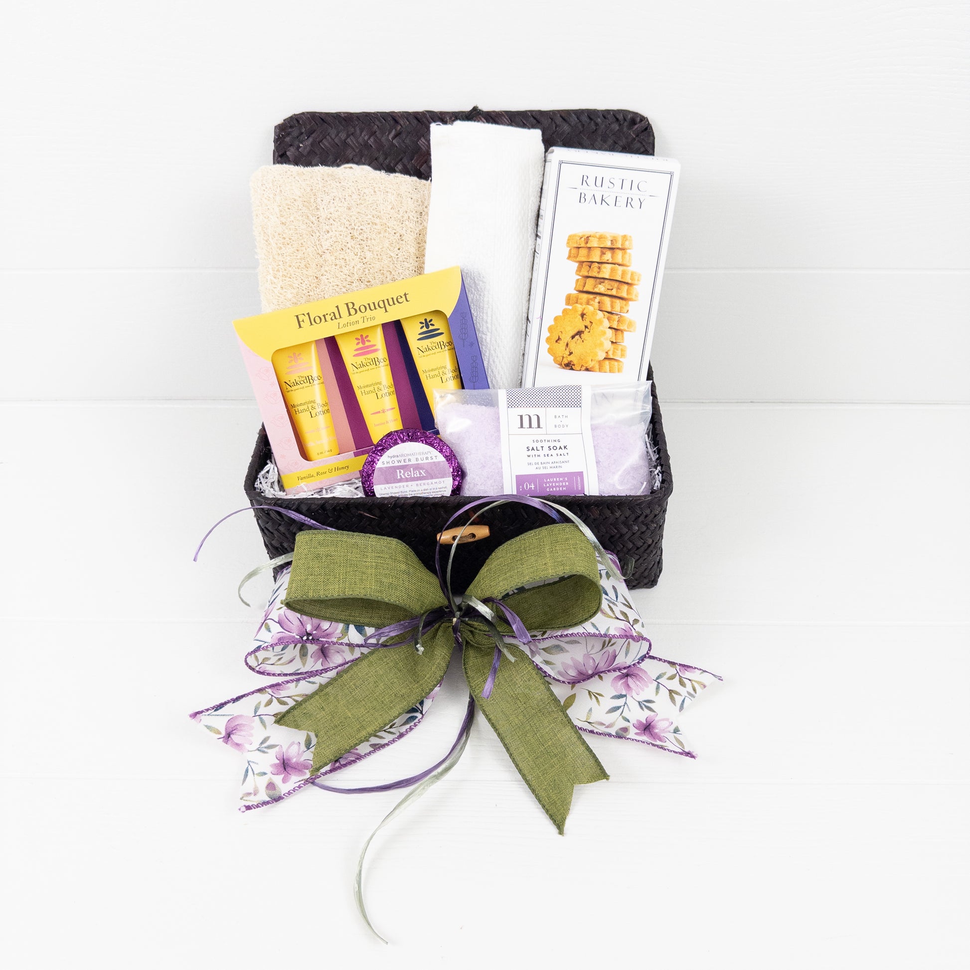 Celebrate her with the soothing scents of lavender and the nourishing touch of premium skincare in our Lavender Bliss Basket. Thoughtfully arranged in a charming presentation, this gift is designed to relax, restore, and pamper from head to toe. Includes:
